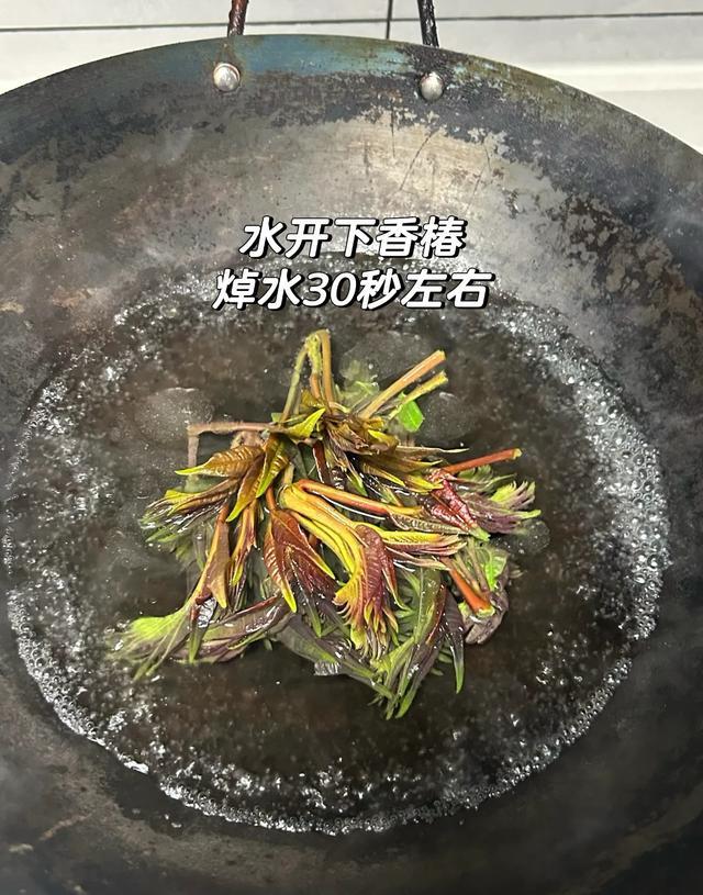 亚硝酸盐听着吓人,但焯水能帮大忙,叶菜一律15-30秒,香椿就多焯会,30秒左右,亚硝酸盐就会被水溶析出,吃着就放心多啦。