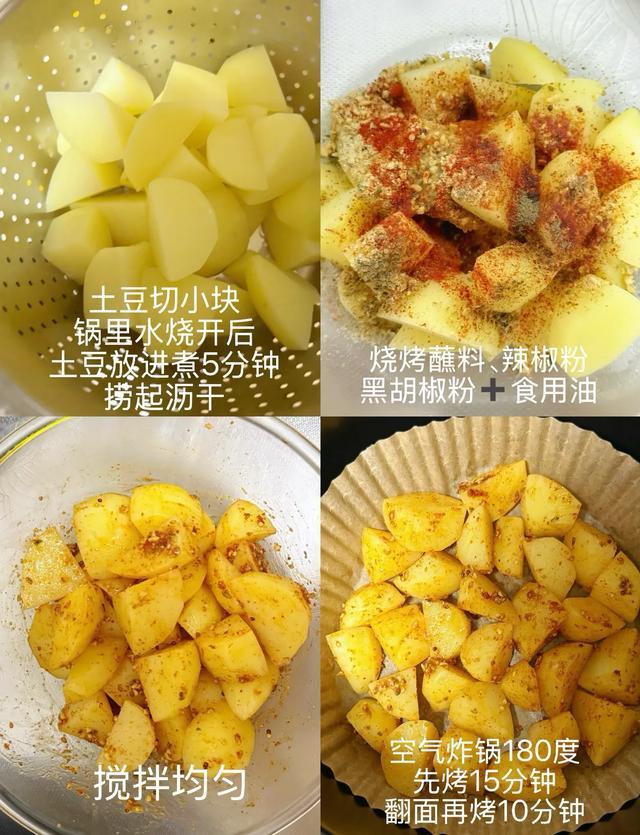 同一个目的,还包括土豆、胡萝卜、山药这些根茎类蔬菜,比如大家都爱用空气炸锅烤土豆,如果你把生土豆直接扔进去,很容易熟不透,但如果你先焯5分钟水,不但烤的时间短,口感绝对提升一个档次。