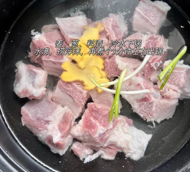 需要记住的是:冷水下锅!不然瞬间高温,就等于把血污锁死在里面了,焯了也白焯,一起下锅去腥的还要有姜、葱、料酒。